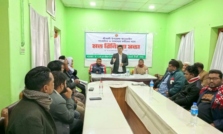 শেরপুরের শ্রীবরদীতে কর্মরত গণমাধ্যম কর্মীদের সাথে মতবিনিময় করা হয়েছে। বৃহস্পতিবার (২ জানুয়ারী) সকালে উপজেলা স্বাস্থ্য কমপ্লেক্স হলরুমে এ মতবিনিময় সভা অনুষ্ঠিত হয়। এতে সভাপতিত্ব করেন উপজেলা স্বাস্থ্য ও পরিবার পরিকল্পনা কর্মকর্তা ডা. এ এস এম মফিদুল ইসলাম।