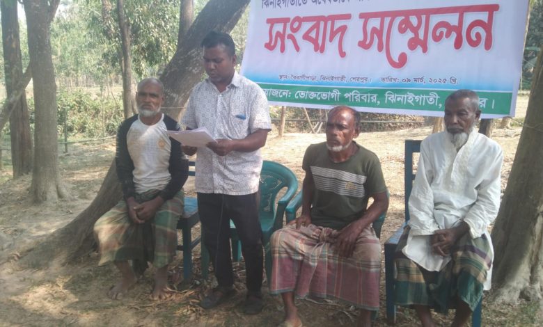 শেরপুরের ঝিনাইগাতীতে প্রতিপক্ষের জমি দখলের ষড়যন্ত্রের প্রতিবাদে সংবাদ সম্মেলন অনুষ্ঠিত হয়েছে।