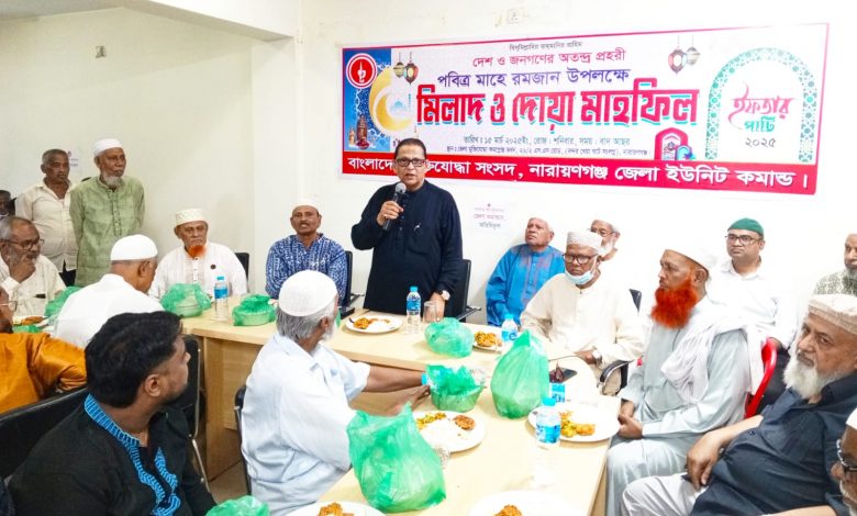 বাংলাদেশ মুক্তিয়োদ্ধা সংসদ নারায়ণগঞ্জ জেলা ইউনিট কমান্ডের আয়োজনে মিলাদ ও দোয়া