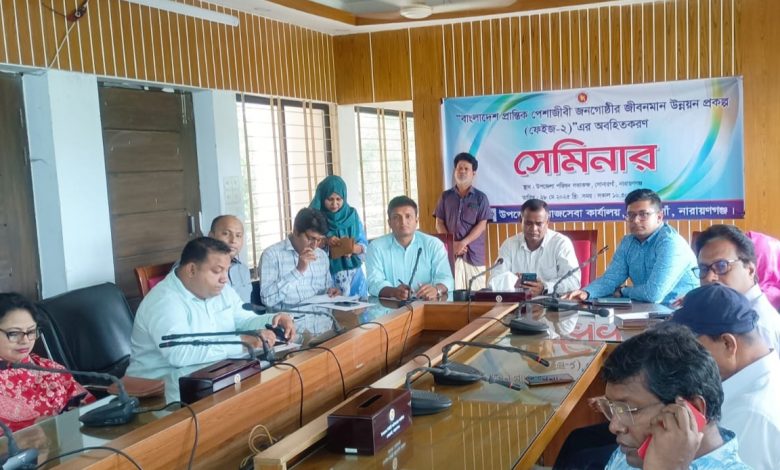 নারায়ণগঞ্জ সোনারগাঁয়ে ‘বাংলাদেশ প্রান্তিক পেশাজীবী জনগোষ্ঠীর জীবনমান উন্নয়ন প্রকল্পের (২য় ফেইজ) অবহিতকরণ সেমিনার অনুষ্ঠিত হয়েছে।