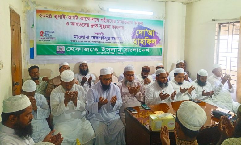 শনিবার (৫ জুলাই) বিকেলে চাষাড়ায় হেফাজতের কার্যালয়ে ২৪ জুলাই-আগস্ট আন্দোলনের শহীদদের স্মরণে দোয়া ও মাগফিরাত কামনা করে এক আলোচনা সভায় প্রধান অতিথির বক্তব্যে ফেরদাউসুর রহমান একথা বলেন।