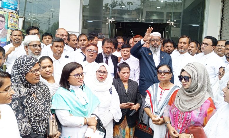 রবিবার (১৭ আগস্ট) দুপুরে কোর্ট প্রাঙ্গনে তারা মিছিল ও লিফলেট বিতরণ করেন।