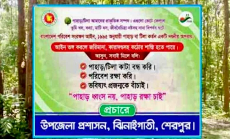 শেরপুর জেলার সীমান্তবর্তী ঝিনাইগাতী উপজেলায় পাহাড় ও টিলা রক্ষায় ব্যাপক জনসচেতনতা তৈরির উদ্যোগ নিয়েছে উপজেলা প্রশাসন। এ উপলক্ষে উপজেলার বিভিন্ন গ্রাম ও বাজার এলাকায় প্রচারপত্র বিতরণ, মাইকিং এবং সচেতনতামূলক সাইনবোর্ড টাঙানো হয়েছে।