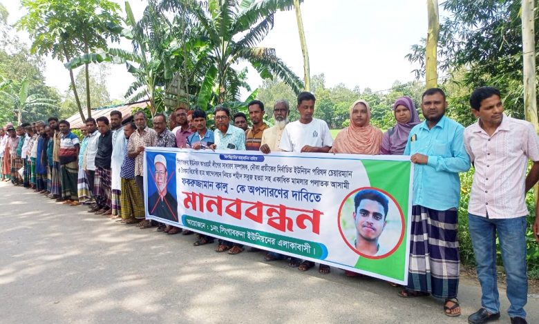 মানববন্ধনে বক্তারা বলেন চেয়ারম্যান ফখরুজ্জামান কালু নৌকা প্রতীক নিয়ে অনিয়মের মধ্য দিয়ে চেয়ারম্যান নির্বাচিত হয়ে অনেক অনিয়ম ও দুর্নীতি করেছে। তিনি বৈষম্য বিরোধী আন্দোলনের সবুজ হত্যার চার্জসীটভূক্ত একাধিক মামলার আসামী। বিগত ২০২৪ এর ৫ আগস্ট ফ্যাসিস্ট সরকারের পতনের পর থেকে ইউপি চেয়ারম্যান ফখরুজ্জামান কালু ইউনিয়ন পরিষদে আসেন না। এতেকরে ইউনিয়নবাসী নাগরিক সেবা থেকে বঞ্চিত হচ্ছে। আমরা প্রশাসনের কাছে তার অপসারণের দাবী জানাচ্ছি ।