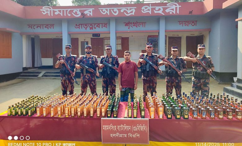 শেরপুরে সীমান্তে বিজিবির অভিযানে ভারতীয় মদ সহ যুবক আটক