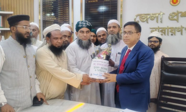 ইসলামী আন্দোলন বাংলাদেশ নারায়ণগঞ্জ মহানগর সভাপতি মুফতি মাসুম বিল্লাহ’র নেতৃত্বে এক প্রতিনিধি দল আজ রবিবার দুপুর ১২ টায় নগবাগত জেলা প্রশাসক মোঃ রায়হান কবির এর সাথে এক সৌজন্য সাক্ষাৎ করেন ও শুভেচ্ছা বিনিময় করেন।
