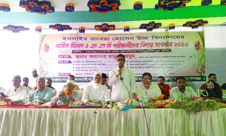 নারায়ণগঞ্জের ইসদাইর এলাকায় অবস্থিত রাবেয়া হোসেন উচ্চ বিদ্যালয়ে অত্যন্ত আনন্দঘন ও মর্যাদাপূর্ণ পরিবেশে বার্ষিক মিলাদ মাহফিল এবং ২০২৬ সালের এসএসসি পরীক্ষার্থীদের বিদায় সংবর্ধনা অনুষ্ঠান অনুষ্ঠিত হয়েছে।