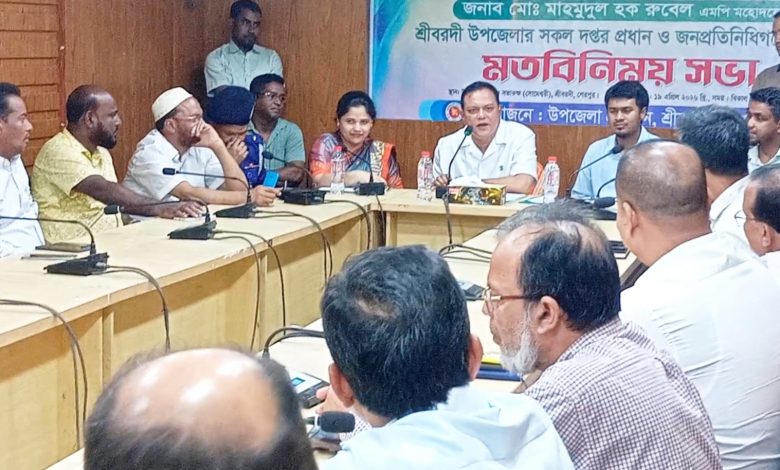 মাদক ও জুয়া নির্মুলে খেলা ধুলার কোনো বিকল্প নাই। খেলা ধুলার মাঠ তৈরি করে কোমলমতি শিক্ষার্থী ও যুব সমাজকে খেলা ধুলায় মনোযোগি করতে হবে। মাদক ও অনলাইন জুয়া বর্তমানে ব্যপক আকার ধারণ করেছে এ থেকে পরিত্রাণ পেতে আইন শৃঙ্খলা বাহিনীকে তৎপর হতে হবে। এছাড়া তিনি শিক্ষা, স্বাস্থ্য, হাতি মানুষমানুষের দ্বন্দ নিরসন, খেলার মাঠ তৈরি ও গ্রামীণ অবকাঠামো উন্নয়ন করতে ব্যপক কাজ করার ইচ্ছা ব্যক্ত করেন। রোববার ১৯ এপ্রিল) বিকালে উপজেলা প্রসাশনের আয়োজনে হলরুম সোমেশ্বরীতে ১৪৫, শেরপুর-৩ (শ্রীবরদী-ঝিনাইগাতী) আসনের নব নির্বাচিত সংসদ সদস্য মাহমুদুল হক রুবেল উপজেলার সকল দপ্তর প্রধান, জনপ্রতিনিধি, রাজনৈতিক নেতৃবৃন্দ ও গণমাধ্যম কর্মীদের সাথে মতবিনিময় কালে এসব কথা বলেন। এতে সভাপতিত্ব করেন উপজেলা নির্বাহী অফিসার মনিষা আহমেদ। এসময় অন্যানের মাঝে বক্তব্য রাখেন উপজেলা বিএনপির আহবায়ক আব্দুর রহিম দুলাল, সদস্য সচিব আব্দুল্লাহ আল মামুন দুলাল, থানা অফিসার ইনচার্জ নুরুল আলম, জনস্বাস্থ্য প্রকৌশলী মনিরুজ্জামান, সমাজসেবা অফিসার কামরুজ্জামান, তাতীহাটি ইউপি চেয়ারম্যান এড. আব্দুর রউফ, ভেলুয়া ইউপি চেয়ারম্যান আব্দুল করিম, প্রেসক্লাব শ্রীবরদীর সভাপতি এজেএম আহছানুজ্জামান ফিরোজ প্রমুখ। এসময় উপজেলার বিভিন্ন দপ্তরের কর্মকর্তা, রাজনৈতিক নেতৃবৃন্দ, জনপ্রতিনিধি ও গণমাধ্যম কর্মী উপস্থিত ছিলেন।