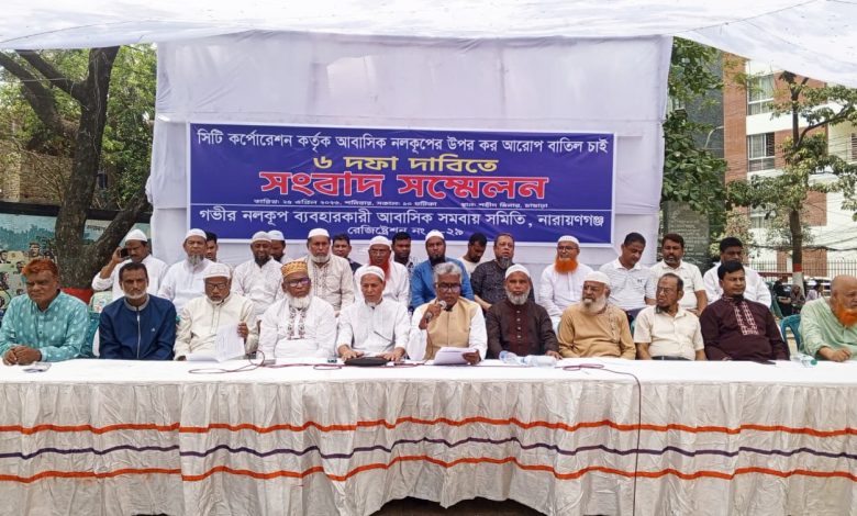আবাসিক গভীর নলকূপের ওপর কর বাতিলের দাবিতে নারায়ণগঞ্জে সংবাদ সম্মেলন