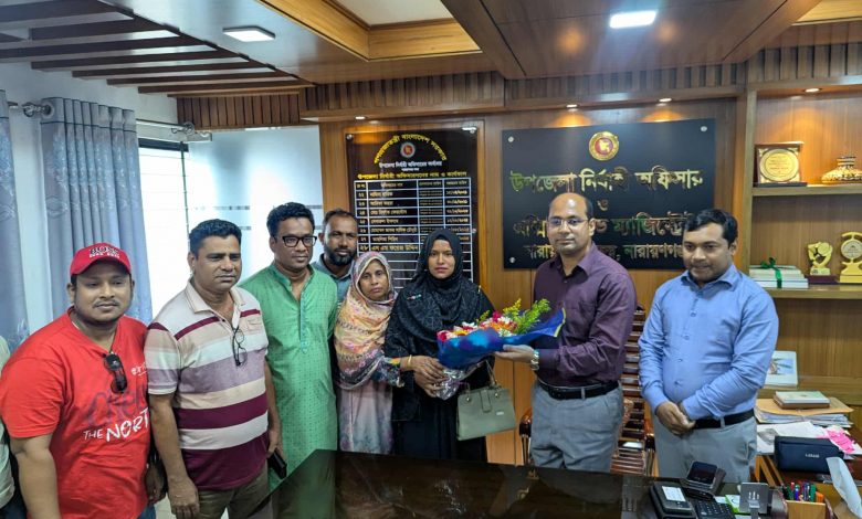 মঙ্গলবার (২৮ এপ্রিল) দুুপুরে নারায়ণগঞ্জ সদর উপজেলা পরিষদের নির্বাহী কর্মকর্তা (ইউএনও) এস এম ফয়েজ উদ্দিন তাকে এ দায়িত্বভার বুঝিয়ে দেন।